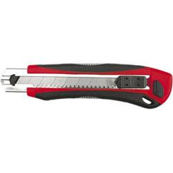 <h2 class="w3-padding-left">Description</h2>Nó? z ostrzem ?amanym 25 mm. Obudowa wykonana z czerwonego plastiku pokryta czarn? gum?, która zapewnia komfortowy uchwyt i zapobiega wy?li?ni?ciu si? no?yka z r?ki..Prowadnica-metalowa Ostrza wykonane ze stali SK 5. W zestawie jest 5 ostrzy, przechowywanych w obudowie no?yka. Blokada ostrza zabezpiecza przed jego niepo??danym wysuni?ciem lub schowaniem. <br/>&#13; <br/>&#13; <br/>&#13; <br/>&#13; <h2 class="w3-padding-left">Intended use / Application</h2>Mocny nó? z szerokimi ob?amywanymi ostrzami 25 mm. Do wielu prac technicznych i dekoratorskich.