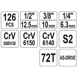 JUEGO DE CUBOS 1/4 3/8 1/2 125 PZ